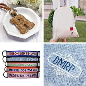 All six of these best-selling embroidered items - baby bibs and onesies, monogrammed towels, key fobs, dog collars, tote bags, and cushion covers - share a few important qualities: