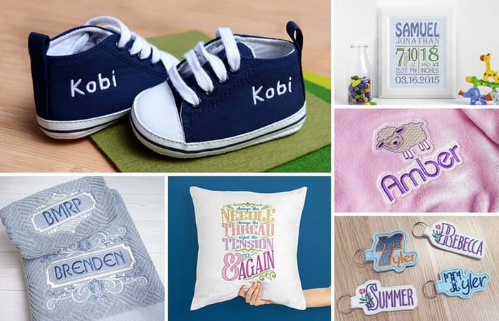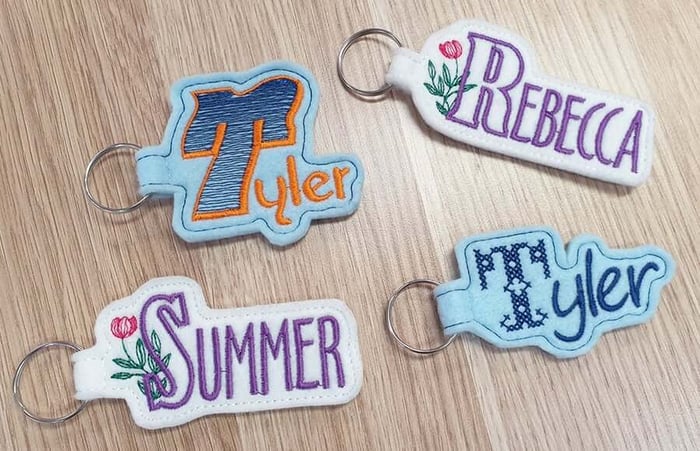 - For each order where the customer asks for “Beth’s pet tag” or “Matthew & Sarah wedding gift”, you can choose a font that suits the style of the item and stitch out crisp, well-balanced lettering.